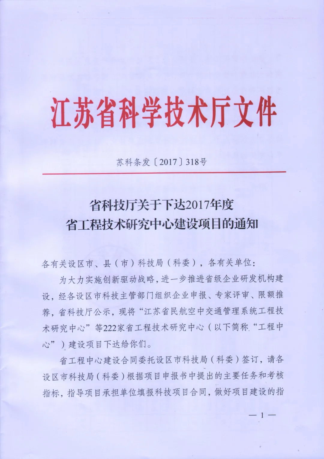 2017年11月,江蘇省科學技術廳將“江蘇省工程技術研究中心”建設項目下達給222家單位,南京中科水治理股份有限公司承擔“江蘇省清水型生態系統構建工程技術研究中心”建設工作。