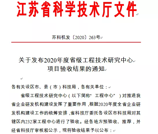 2020年底,江蘇省科技廳委托各設區市科技局對其轄區內省工程中心進行驗收。經各地方預驗收、推薦,并經省科技廳審核和公示,“江蘇省清水型生態系統構建工程技術研究中心”在內的216家工程中心已完成項目合同約定的各項建設任務和考核指標,實現了預期建設目標,順利通過專家評審驗收。
