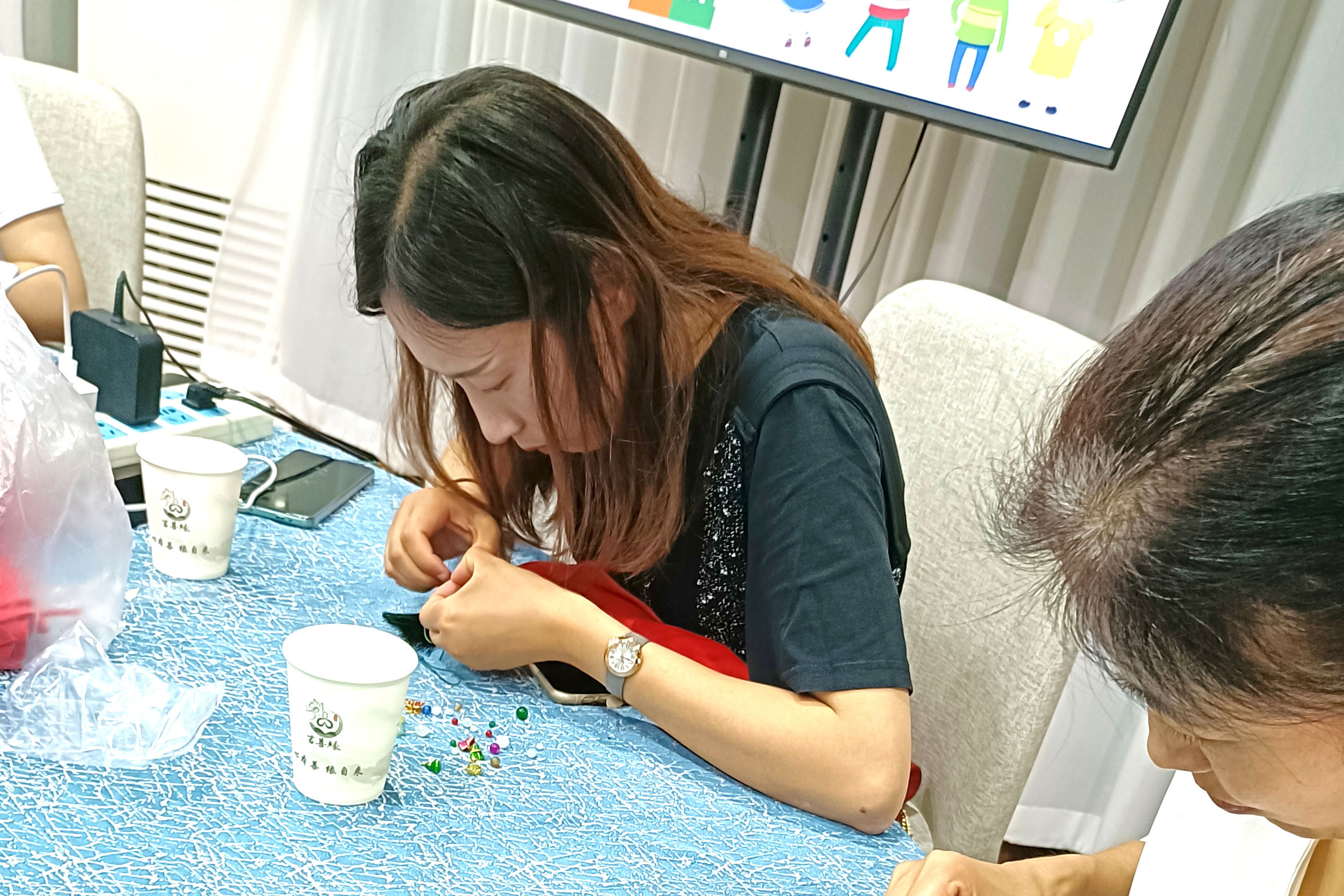 在隨后的動手制作環節中,女職員們充分發揮了自己的審美藝術,精心挑選色珠搭配,相互交流編織心得,一串串色彩斑斕、做工精致的掛件呈現在眼前。