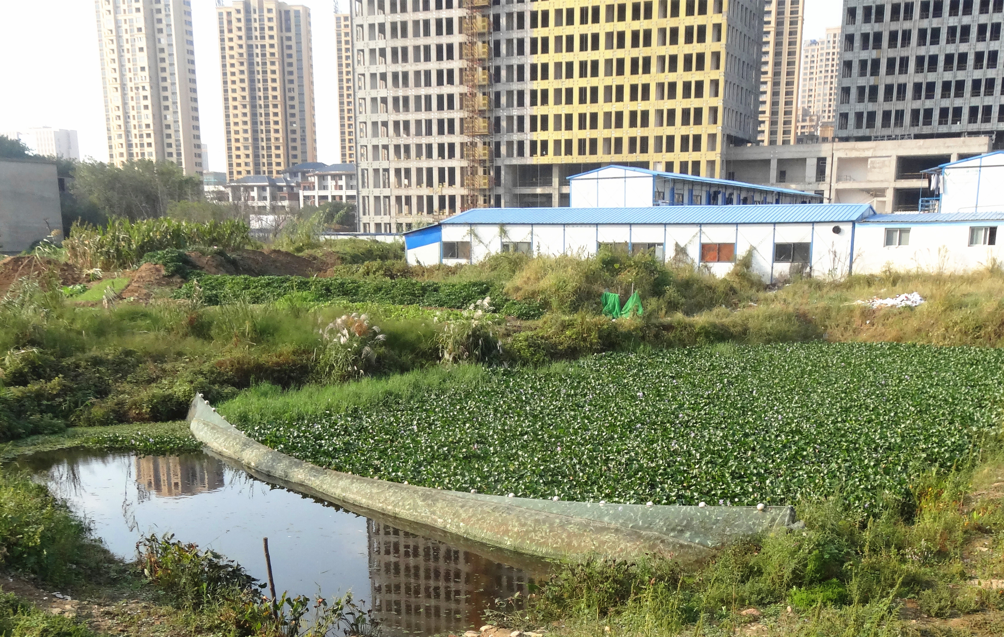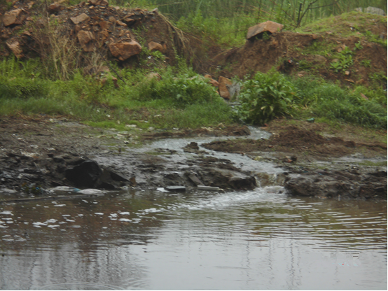 湖區(qū)北側(cè)補水口為湖區(qū)主要污染源,污水主要由上游魚塘水、周圍建筑工地生活污水、路面、山坡、土坡等自然雨水匯集。水中含有較多的油污、水色黑灰、水體渾濁、水質(zhì)為劣五類。