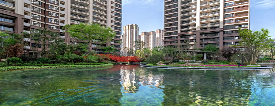 一池水,一片海,它是我們心中美好的水岸島居生活的一個真實夢境。設計師以現代的手法構圖溪岸,融合泛會所、溪流、湖心島等原生態水岸景觀,再現“岸梅溪春又生”的自然時尚居所,給人以森林般的水岸島居體驗,展現島居住宅和諧精緻之美。
