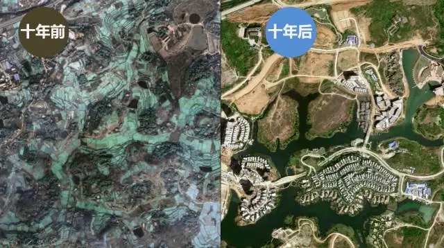 十年前后衛星拍攝圖片變化