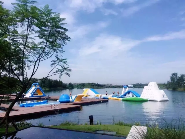夏天的時候開發商會開放部分水域,孩子們穿上救生衣就可以在湖里游泳或者玩各種水上活動。