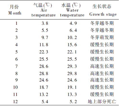 苦草是多年生草本。分布在亞熱帶地區(qū)的苦草( V. natans )冬季地上部分死亡,以冬芽或種子越冬,春季從冬芽或種子開始萌發(fā),且隨氣溫上升開始緩慢生長,夏季為快速生長期,最大生物量一般在9月份出現(xiàn)。開花期是5 8月,結(jié)果期為810月,種子成熟期在12月左右。