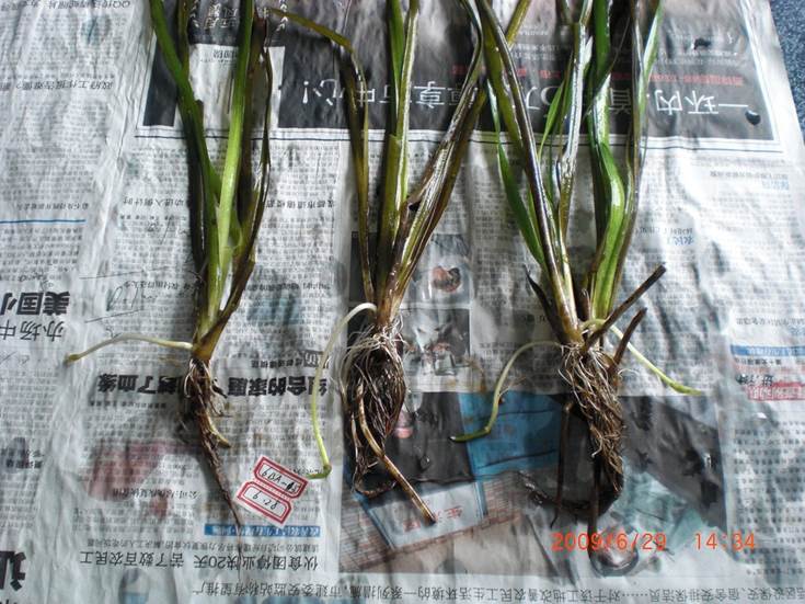 1、溶解氧平均值為1.6 mg/L時(shí)對苦草株重、株高、分蘗數(shù)及葉片數(shù)等指標(biāo)的影響均不明顯,對塊莖的影響則較顯著,表現(xiàn)為塊莖數(shù)量與重量顯著下降。