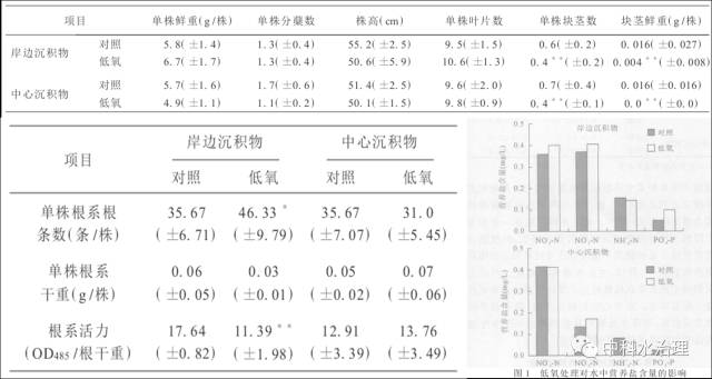 3、低氧處理使岸邊沉積物處理組的沉積物氧化還原電位顯著下降、水體營養(yǎng)鹽濃度上升,尤其是磷酸鹽濃度顯著增加。低氧對苦草生長的影響雖不明顯,但對其種群擴(kuò)張有潛在的不利作用。